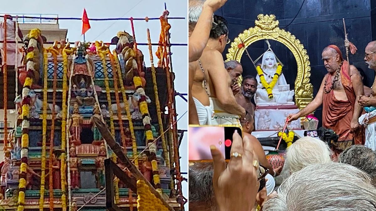 The ritual, also referred to as Samprokshanam, is an ancient Vedic tradition conducted every 12 years to consecrate a temple. It is rooted in the belief that such ceremonies renew and harmonise the spiritual energies of the resident deity and the temple’s physical structure. Monday’s proceedings commenced at 9:00 am, reaching a crescendo with the Maha Vimana Kumbhabhishekam, led personally by the Sankaracharya.